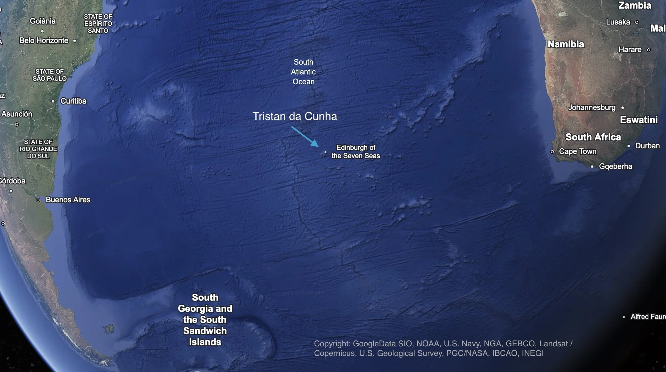 Map showing Tristan da Cunha. Image courtesy of Google Earth.