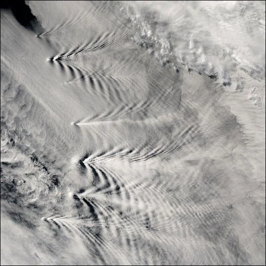 Wave clouds over South Sandwich Islands January 27th 2004. (Image courtesy of Nasa)
