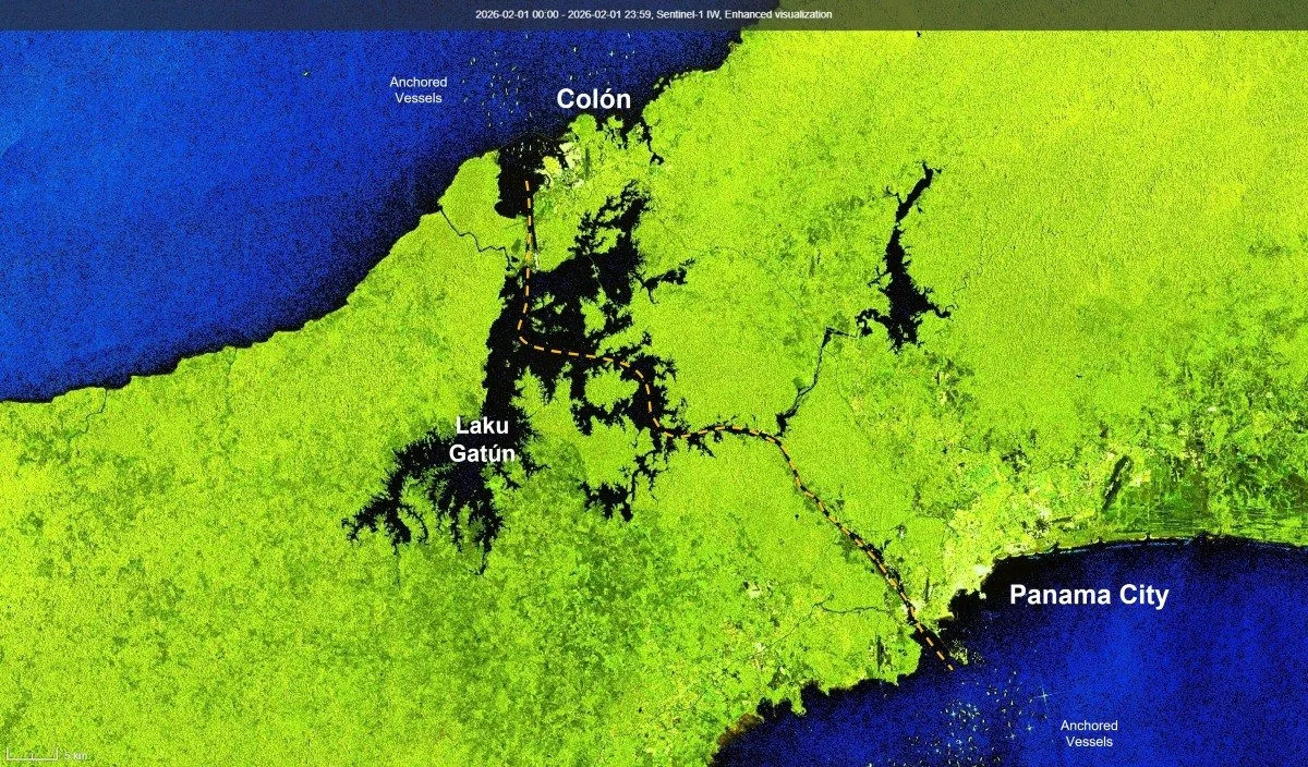 Panama Canal and Lake Gatún. Contains modified Copernicus Sentinel-1 data (2026)